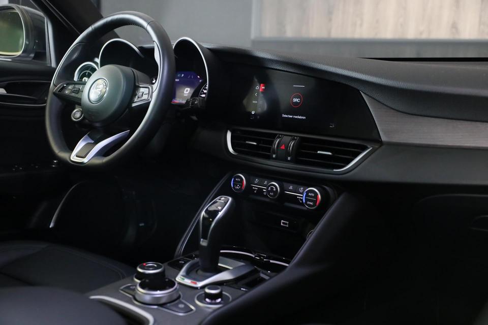 Het is de combinatie van rijplezier en elegantie die Italiaanse auto's zo onweerstaanbaar maakt. De uitstekende prestaties van deze auto komen van de viercilinder motor en de automatische transmissie. Deze Alfa Romeo GIULIA is luxe afgewerkt. Kijk maar naar het lederen interieur! Zit u goed? De stoelen zijn eenvoudig instelbaar dankzij de elektrische bediening met geheugen. Met het elektrisch bedienbare dak verandert u deze cabrio in luttele seconden in een auto voor zonaanbidders. Licht en luchtpartijen: u krijgt ze bijgeleverd dankzij het glazen panoramadak. Zo'n verwarmd stuurwiel is een comfortabele extra, zeker in de winter. Verblinding van tegenliggers is er niet meer bij, dankzij de koplampen met matrix LED-verlichting. En toch de kwaliteit van daglicht in het donker! U wordt in deze auto ook getrakteerd op 19 inch lichtmetalen velgen, zwarte hemelbekleding, getint glas, in delen neerklapbare achterbank, LED-achterlichten en verstelbare lendensteunen.