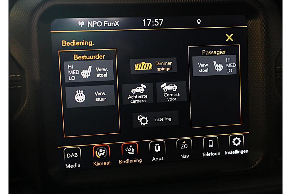 Aan boord van deze Jeep houden verschillende geavanceerde systemen voor u de weg in de gaten. Ze waarschuwen u voor noodsituaties en kunnen in een aantal gevallen ook zelf ingrijpen. Wat deze auto ook kan, is lezen. Hij 'leest' voor u de verkeersborden tijdens de rit en attendeert u erop door ze op het dashboard te projecteren. Deze Jeep WRANGLER UNLIMITED blijft altijd alert. Zo wordt gebruik gemaakt van forward collision warning. Bij het mogelijke risico op een aanrijding met een voertuig voor u, slaat het systeem alarm. De veiligheid van deze auto wordt verder verhoogd door dodehoekdetectie, hill hold functie, Abs - anti blokkeer systeem met brake assistant en bandenspanningcontrolesysteem.