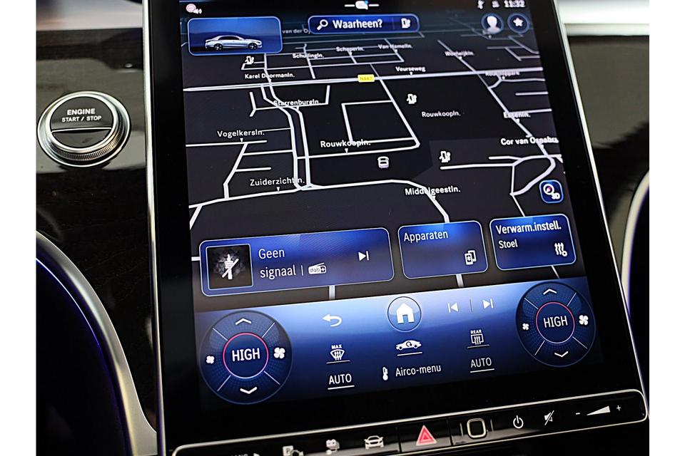 Pas de interface van uw cockpit moeiteloos aan. Het is mogelijk door het digitale dashboard in deze auto. De 360 graden camera op deze auto wordt verzorgd door vier geavanceerde camera's. Het biedt garantie van uitstekende beeldkwaliteit. Als u de adaptive cruise control inschakelt, regelt de auto zelf de snelheid en de afstand tot de auto voor u. Het infotainmentsysteem bedient u met uw vingers of met uw stem, met dank aan de geïntegreerde stembediening. Pech oplossen en zelfs voorkomen? Gaat eenvoudig. Via Connected Services heeft u alle data in de hand, gewoon op de smartphone! Deze Mercedes-Benz is voorzien van Burmester high-end sound system, navigatiesysteem met harde schijf, automatische airconditioning, DAB ontvangst, regensensor en keyless entry.