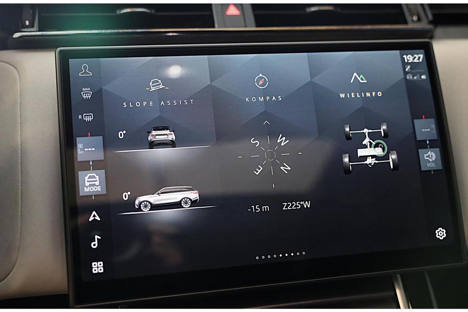 Het is niet alleen maar een stoer uiterlijk, deze Land Rover Range Rover Velar biedt ook de sportieve rijkwaliteiten die u zoekt. De aandrijving van deze Land Rover wordt verzorgd door een viercilinder motor en een automatische transmissie. Van binnen ziet u een lederen interieur, een stijlvolle uitvoering. Dankzij de elektrische stoelbediening is het gemakkelijk om de optimale zitpositie te vinden. Licht, lucht, ruimte en gemak wordt verzorgd door het elektrisch bedienbare glazen panoramadak. Met een druk op de knop gaat de elektrische achterklep open. Verblinding van tegenliggers is er niet meer bij, dankzij de koplampen met matrix LED-verlichting. En toch de kwaliteit van daglicht in het donker! U wordt in deze auto ook getrakteerd op open dak, 20 inch lichtmetalen velgen, geluidsisolerende ramen, zwarte hemelbekleding, dakspoiler en in delen neerklapbare achterbank.