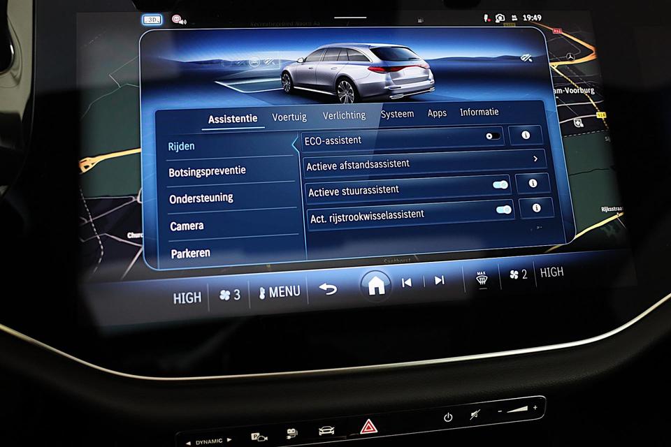 In deze auto zijn verschillende technologieën aanwezig die voor u het verkeer en de omgeving in de gaten houden en die desnoods ook kunnen remmen of bijsturen. U verliest de weg geen seconde uit het oog. De dashboardinfo wordt in uw zichtveld geprojecteerd door de head-up display. De actuele snelheidslimiet, een inhaalverbod en andere verkeersborden; de verkeersborddetectie ondersteunt u tijdens elke rit. Met het Lane-keeping systeem gaat u nooit onbedoeld over de streep. Bovenop deze veiligheidsfeatures heeft deze Mercedes-Benz bovendien dodehoekdetector detectiesysteem, accident avoidance system, forward collision warning system, Abs - anti blokkeer systeem met brake assistant, vermoeidheidsherkenning en bandenspanningcontrolesysteem.