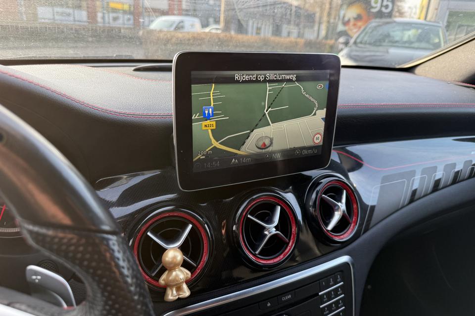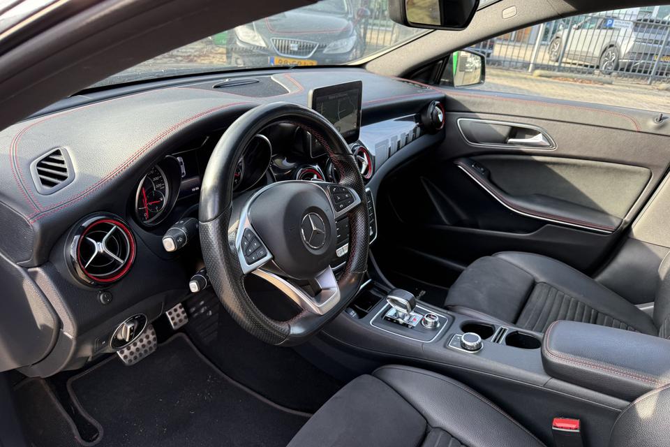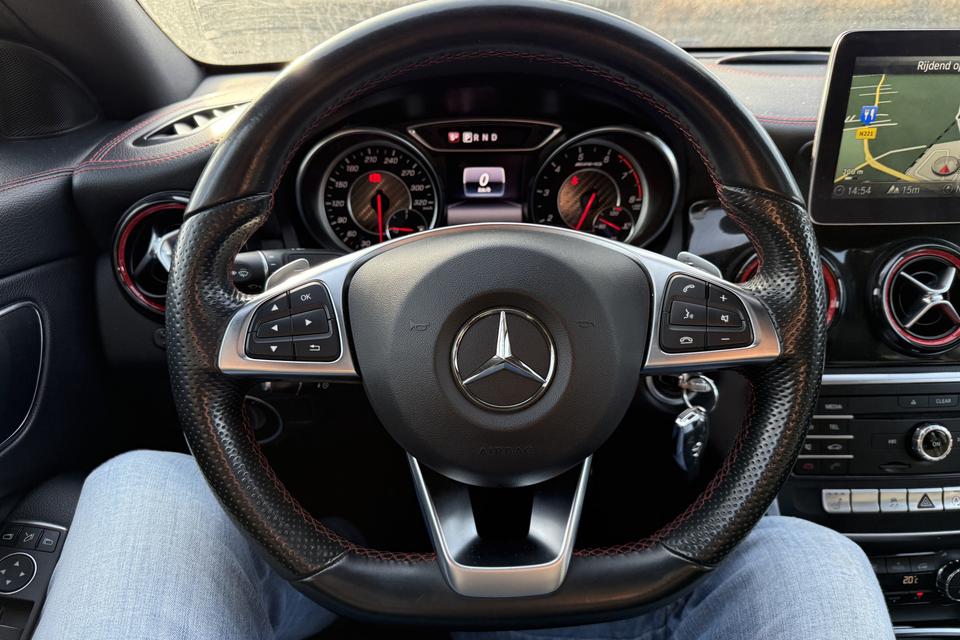 Een occasion om van te dromen. Deze Mercedes-Benz CLA-klasse brengt behalve een pittige motor en een vriendelijke kilometerstand ook de nodige extra's mee. Met de AMG-styling mag deze auto zeker gezien worden. De krachtige motor geeft deze Mercedes-Benz uitstekende prestaties. De auto is voorzien van leren bekleding - een fraaie en sfeerverhogende extra. Ga samen met uw bijrijder lekker zitten in de verwarmbare voorstoelen. Opvallend zijn de stoere sportstoelen, die zorgen voor een onwrikbare zit in de scherpe bochten. Fijn zo'n elektrisch bediend glazen panoramadak. U wordt in deze auto ook getrakteerd op 18 inch lichtmetalen velgen, LED koplampen, AMG-styling, sportonderstel, halflederen bekleding en zwarte hemelbekleding.