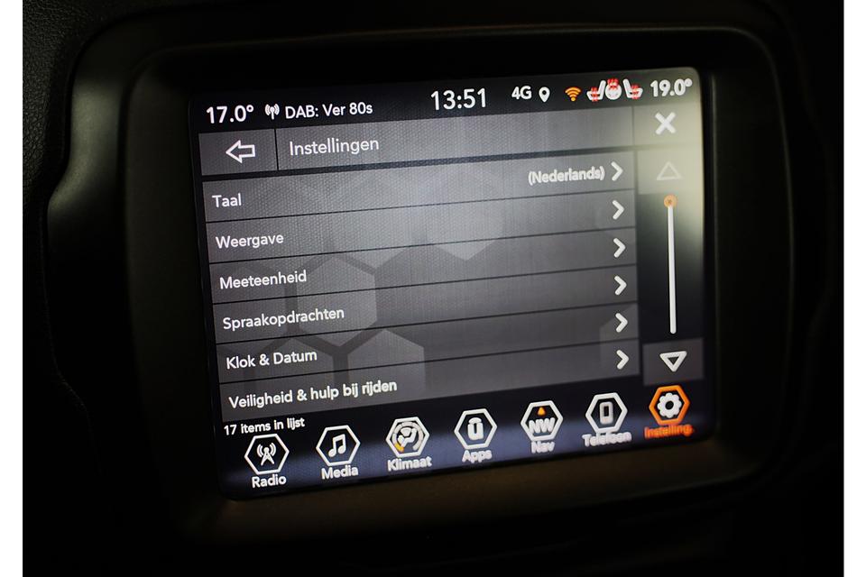 De nieuwste veiligheidssystemen komen in deze Jeep RENEGADE samen. De actuele snelheidslimiet, een inhaalverbod en andere verkeersborden. De verkeersborddetectie ondersteunt u tijdens elke rit. Onbedoeld buiten de rijstrook raken wordt voorkomen door het Lane-keeping systeem. Deze auto heeft actieve dodehoekdetectie. Dit veiligheidssysteem helpt u om aanrijdingen te voorkomen. De auto is ook uitgerust met accident avoidance system, forward collision warning system, hill hold functie, Abs - anti blokkeer systeem met brake assistant, vermoeidheidsherkenning en bandenspanningcontrolesysteem.