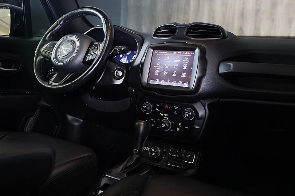 Kilometer na kilometer, bocht na bocht levert deze Jeep RENEGADE de beste rijprestaties. De aandrijving van deze Jeep wordt verzorgd door een viercilinder motor en een automatische transmissie. Het interieur is luxe uitgevoerd met leren bekleding. Voorin is het 's winters genieten met de verwarmbare voorstoelen voor zowel bestuurder als bijrijder. De sportstoelen houden u en uw passagier stevig vast tijdens een snelle rit, maar bieden ook altijd comfortabele ondersteuning. Het elektrisch bediende cabriodak opent en sluit automatisch. Het wijdse uitzicht door het glazen panoramadak maakt van elke rit een belevenis. Beknibbelen op comfort is er niet bij met deze Jeep RENEGADE. Hij is zelfs voorzien van een verwarmd stuurwiel! Tot de voorzieningen van deze auto behoren 19 inch lichtmetalen velgen, LED koplampen, zwarte hemelbekleding, extra getint glas, in delen neerklapbare achterbank en verstelbare lendensteunen.