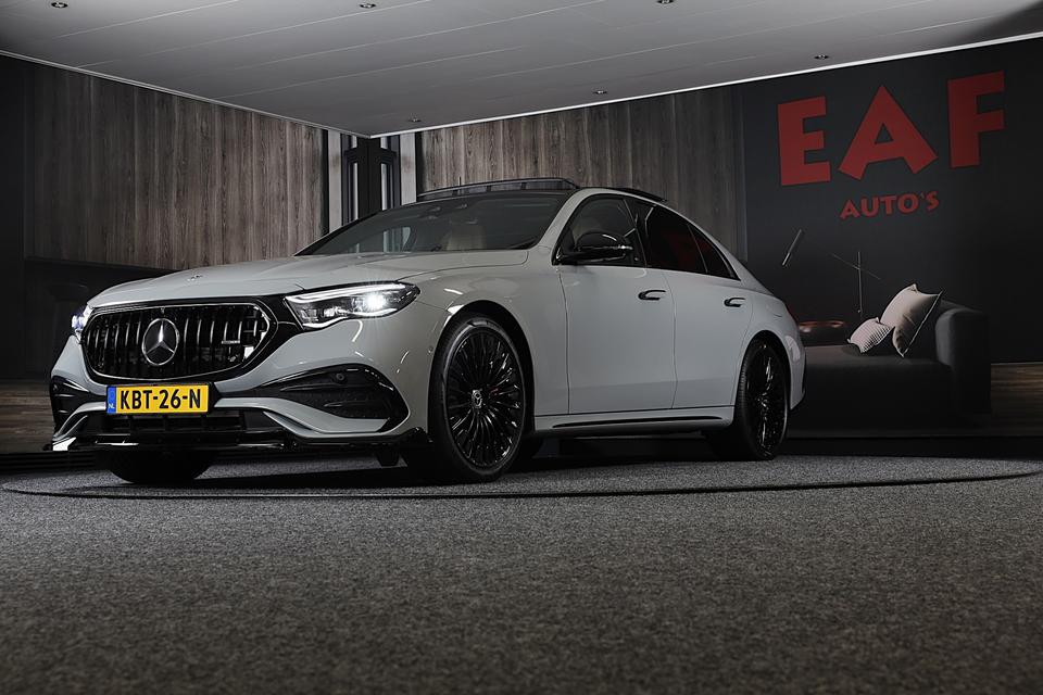 De Mercedes-Benz E-klasse combineert comfort met een uitstekende wegligging en dynamische rijkwaliteiten. De AMG Line Exterieur geeft deze auto een bijzonder karakter en staat voor sportiviteit en exclusiviteit. Met een viercilinder motor en een automatische transmissie beschikt deze Mercedes-Benz over uitstekende prestaties. Dankzij de luchtvering hebben alle vier de wielen optimaal contact met de weg. En ondertussen elimineert ze het effect van oneffenheden. De actieve veiligheid wordt verder vergroot dankzij vierwielaandrijving. Deze Mercedes-Benz is voorzien van een mooie en comfortabele lederen bekleding. In de verwarmbare voorstoelen zitten is elke keer een welkom gevoel. De massagefunctie doet daar nog een schepje bovenop. Neem plaats op de comfortabele stoelen. Dankzij de elektrische bediening en het geheugen is het eenvoudig om hierin de beste zitpositie te vinden. Een heerlijk zonnetje, of indrukwekkende wolkenpartijen? Bekijk ze onbelemmerd door het elektrisch bediende glazen panoramadak. Tot de uitrusting behoren ook open dak, verwarmd stuurwiel, een elektrisch bedienbare achterklep, 20 inch lichtmetalen velgen, LED koplampen en AMG Line Exterieur.