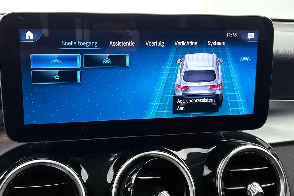 De nieuwste veiligheidssystemen komen in deze Mercedes-Benz GLC-klasse samen. Een camera houdt de juiste koers binnen de rijstrook in de gaten en het Lane-keeping systeem corrigeert bij afwijkingen. De dodehoekdetectie waarschuwt als een ander voertuig zich in uw dode hoek bevindt. Forward collision warning waarschuwt voor een kop-staart botsing. Dankzij veiligheidsvoorzieningen als hill hold functie, vermoeidheidsherkenning, frontale botsbescherming en bandenspanningcontrolesysteem, bent u steeds veilig onderweg.