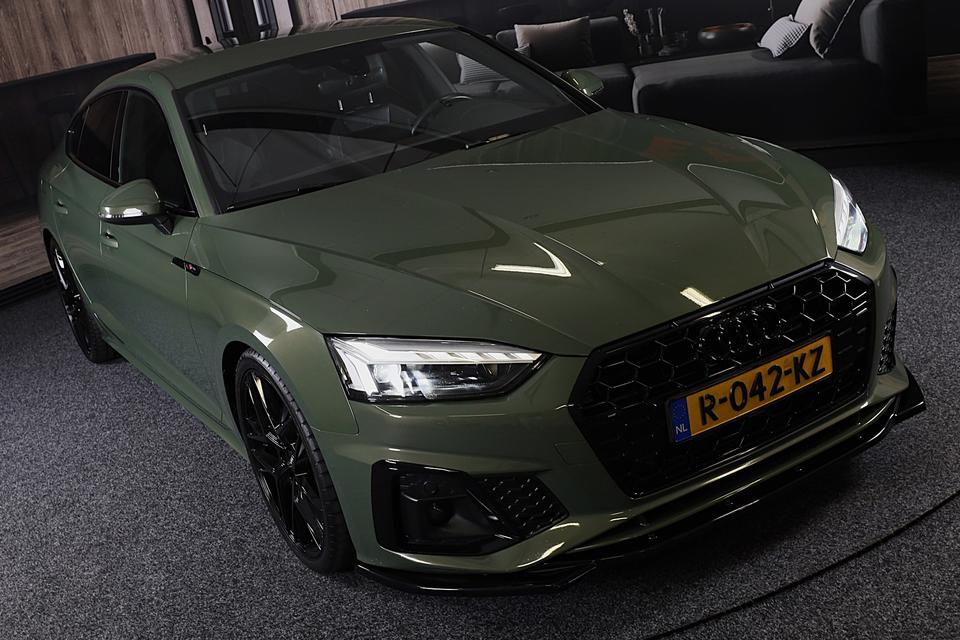 Dynamische styling, zorgvuldig afgewerkt met fraaie materialen en ontworpen met oog voor detail. De Audi A5 Sportback is van binnen en van buiten een toonbeeld van Duits design. S line exterieur styling benadrukt de sportieve functionaliteit van het ontwerp. De aandrijving van deze Audi wordt verzorgd door een viercilinder motor en een automatische transmissie. Deze Audi A5 Sportback komt in de luxe uitvoering, inclusief lederen interieur. Voor het pittige uiterlijk én goed gesteund zitten zorgen de sportstoelen. De achterklep opent automatisch met een druk op de knop. Handig als u met volle handen staat. De koplampen met matrix LED-verlichting zijn het hoogst haalbare op het gebied van autoverlichting. Bij de zeer complete uitrusting van deze auto behoren ook 18 inch lichtmetalen velgen, sportonderstel, warmtewerend glas, zwarte hemelbekleding, in delen neerklapbare achterbank en LED-achterlichten.