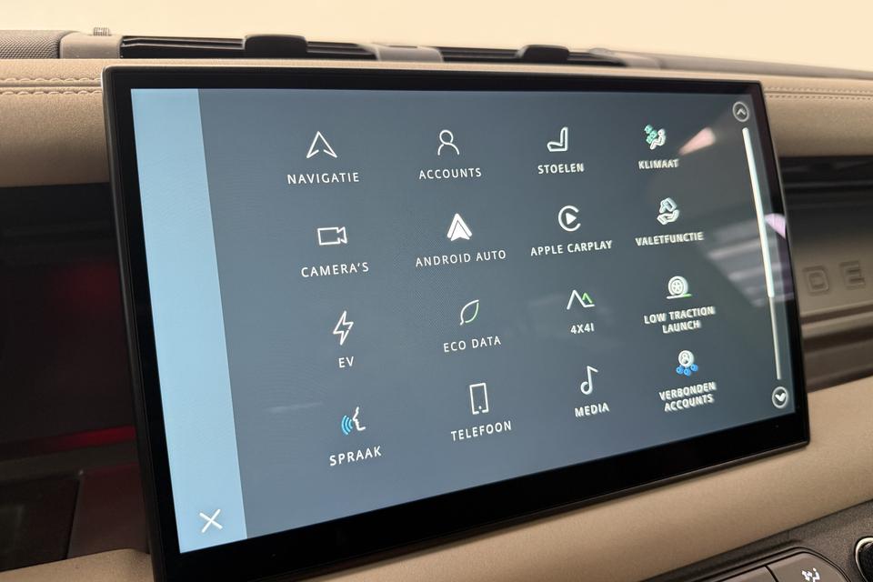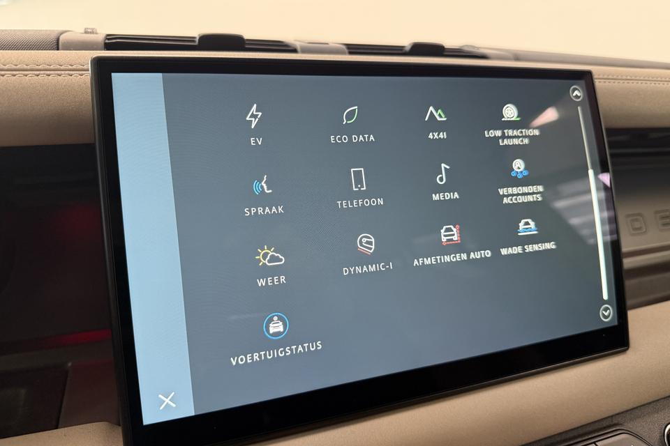 Alle benodigde informatie helder in beeld: het digitale dashboard is een geweldige rijhulp. Met de 360 graden camera kunt u elk detail rond de auto zien, waardoor mogelijke schade door verkeerd inschatten van afstanden vermeden wordt. Het full map navigatiesysteem brengt u soepel en vlot naar uw bestemming. Aan boord van deze Land Rover Defender 110 is een achteropkomend verkeer waarschuwing voor extra veiligheid. Mooie extra is de ingebouwde WIFI-hotspot. Altijd en overal online! U bent in deze Land Rover ook voorzien van WIFI-hotspot, electronic climate control, DAB ontvangst, regensensor, cruise control en keyless entry.