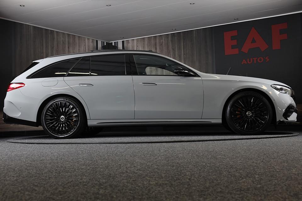 Met zijn compromisloze design, zijn geweldige vermogen en zijn uitgekiende techniek staat deze Mercedes-Benz E-klasse Estate garant voor sportieve topprestaties. Lekker sportief en een tikkie stoer: de AMG Line Exterieur geeft een hele dynamische uitstraling. De aandrijving van deze Mercedes-Benz wordt verzorgd door een viercilinder motor en een automatische transmissie. Basisuitvoering? Niks daarvan! Deze komt met lederen interieur, een elektrisch bediende glazen panorama dak en een elektrisch bedienbare achterklep. Voorin is het 's winters genieten met de verwarmbare voorstoelen. Deze hebben bovendien een massagefunctie, zodat bestuurder en bijrijder altijd fit en soepel uitstappen. Neem plaats op de comfortabele stoelen. Dankzij de elektrische bediening en het geheugen is het eenvoudig om hierin de beste zitpositie te vinden. Verhoogde stabiliteit, optimale wegligging en comfortabel vervoer: de luchtvering en de ergonomische comfortstoelen zorgen ervoor. Het elektrisch bediende cabriodak zorgt voor een indrukwekkend schouwspel. De kap opent en sluit snel en geruisloos. Al is het nog zo fris, koude handen zijn verleden tijd door het verwarmd stuurwiel. Bij de zeer complete uitrusting van deze auto behoren ook 18 inch lichtmetalen velgen, LED koplampen, AMG Line Exterieur, warmtewerend glas, zwarte hemelbekleding en in delen neerklapbare achterbank.