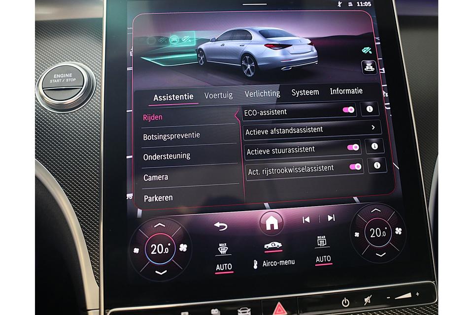 In de Mercedes-Benz C-klasse heeft uw veiligheid en die van uw omgeving prioriteit. Hou de weg in het vizier! De head-up display zorgt dat u de dashboardinfo in beeld geprojecteerd krijgt. De actuele snelheidslimiet, een inhaalverbod en andere verkeersborden; de verkeersborddetectie ondersteunt u tijdens elke rit. Het Lane-keeping systeem doet precies wat nodig is: waarschuwen en corrigeren bij onbedoelde overschrijding van de rijstrooklijnen. U bent mede dankzij dodehoekdetector detectiesysteem, accident avoidance system, forward collision warning system, Abs - anti blokkeer systeem met brake assistant en bandenspanningcontrolesysteem steeds veilig onderweg.